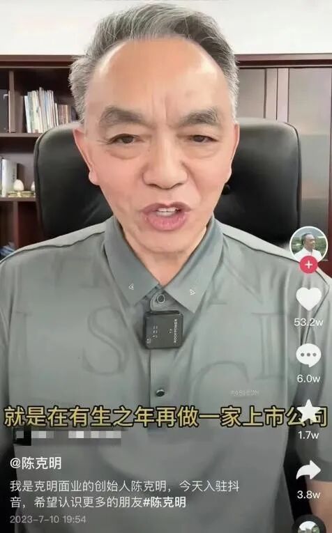 2023年7月10日,陈克明注册抖音账号,不到24小时,迅速涨粉15万。面对着热情的消费者,陈克明又惊又喜。