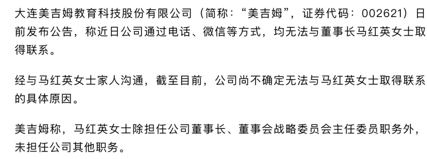 股东宫斗刚刚消停的中国“早教第一股”美吉姆,董事长却失联了。