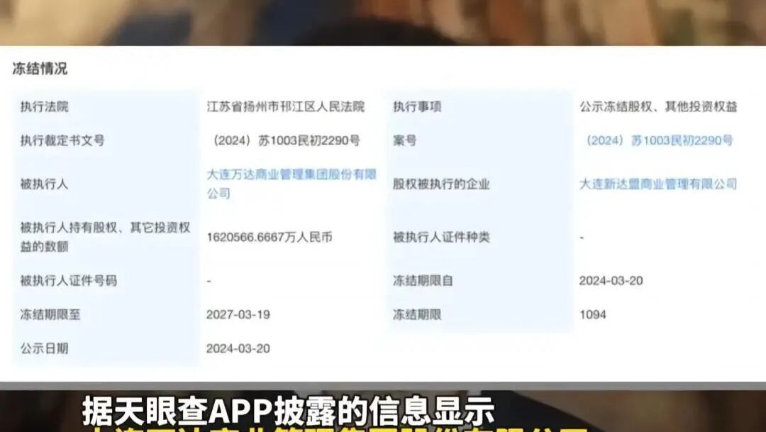 据天眼查披露,近日大连万达商管公司又收到一则股权冻结信息,金额高达162.05亿元。