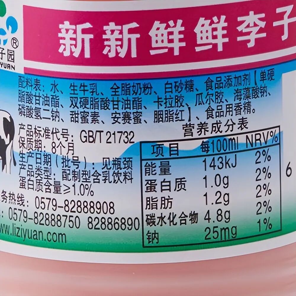 且每100ml李子园甜牛奶中,蛋白质含量仅为1g,同样不符合关于牛奶的国标,应当属于含乳饮料的范畴。
