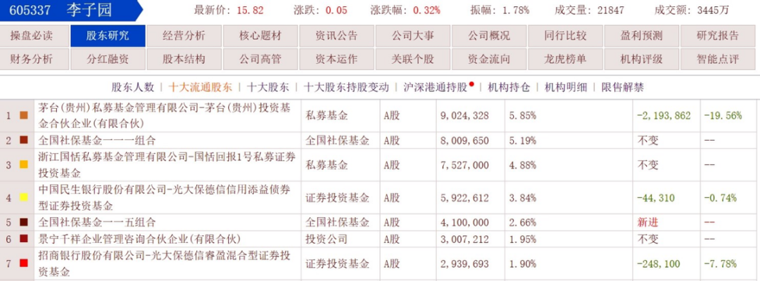 如果你有耐心,调出李子园当下的股东名单细细翻看,排名第一的大股东你一定不陌生,正是“茅台投资基金”。