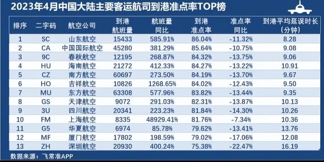 据飞常准统计,去年,春秋航空在到港准点率TOP榜上位列第三,甚至在2022年9月还荣登过第一。
