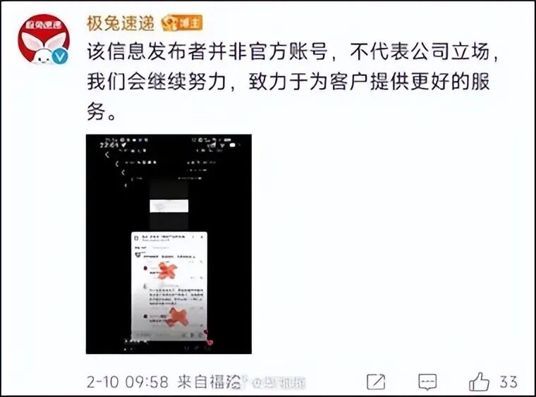 当时,的确有一个昵称为“极兔速递”的账号冒了出来,嚣张地回复了一句:“不差业务!”