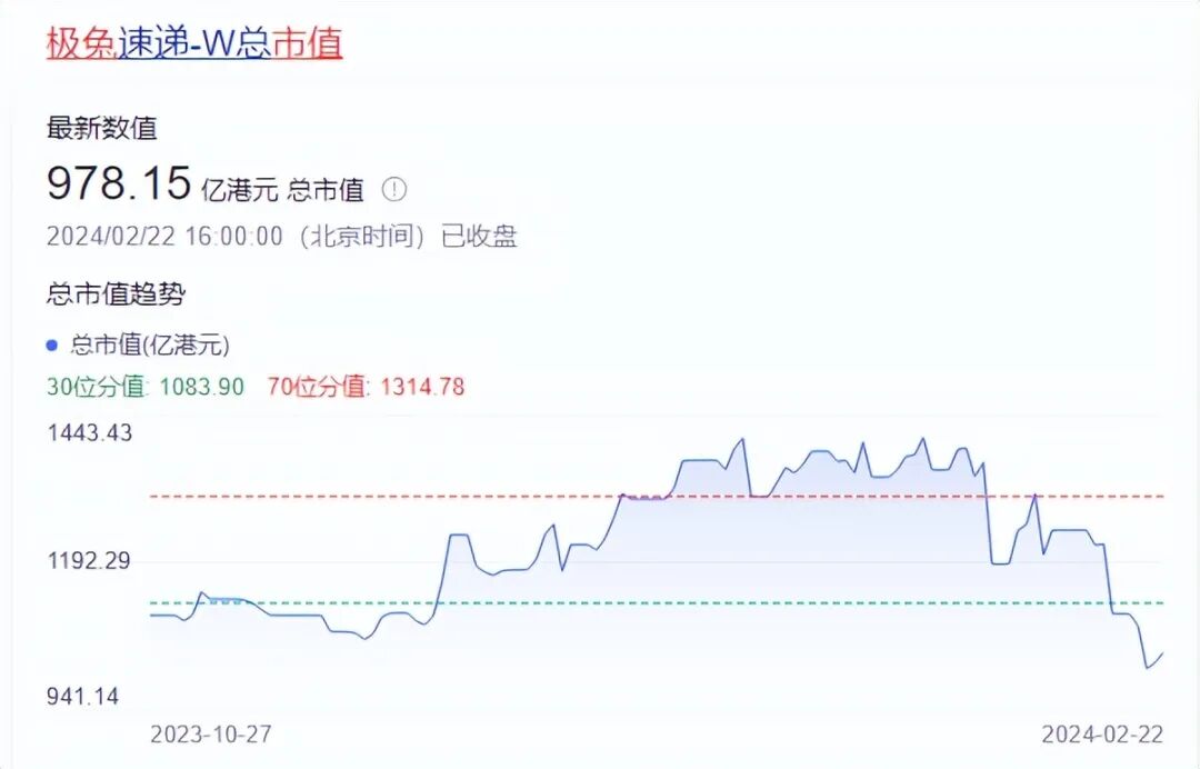 2024年,极兔显然没能保持2023年的良好势头,自1月25日市值达到惊人的1443亿港元之后,就开始一路下滑。