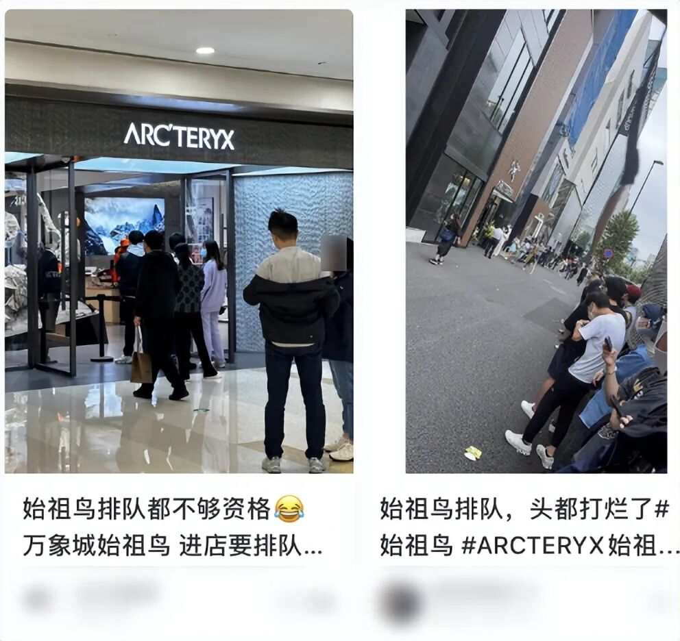 始祖鸟的一夜爆红,也让旗下门店变得水泄不通,四处都是抢购的年轻人和中年人。