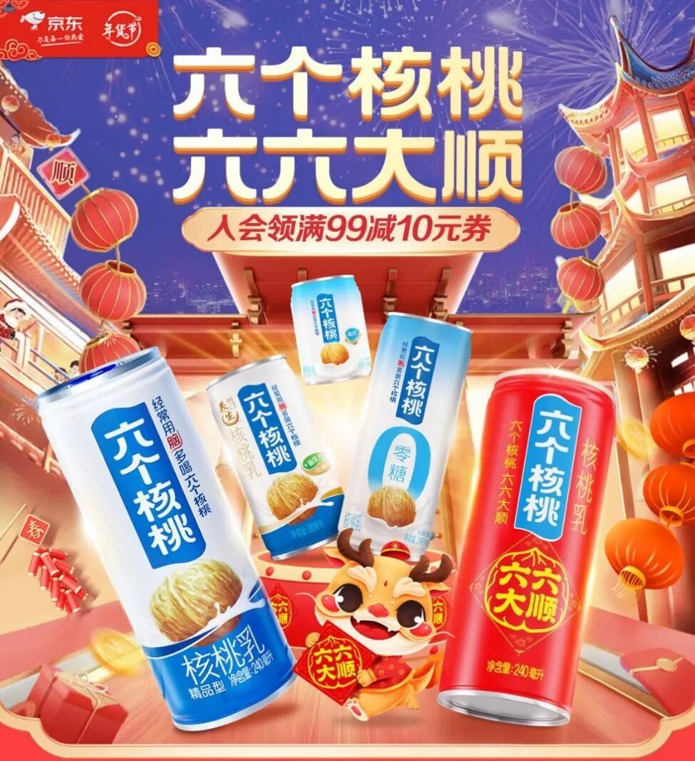 从人们对“顺”的格外关注出发,顺势就推出了六个核桃六六大顺红罐贺岁新品。