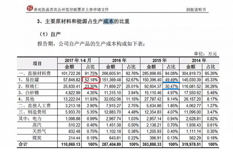 2018年,据新浪财经的报道,六个核桃易拉罐的采购金额占比达到58.84%,而核桃仁才不过15.98%。