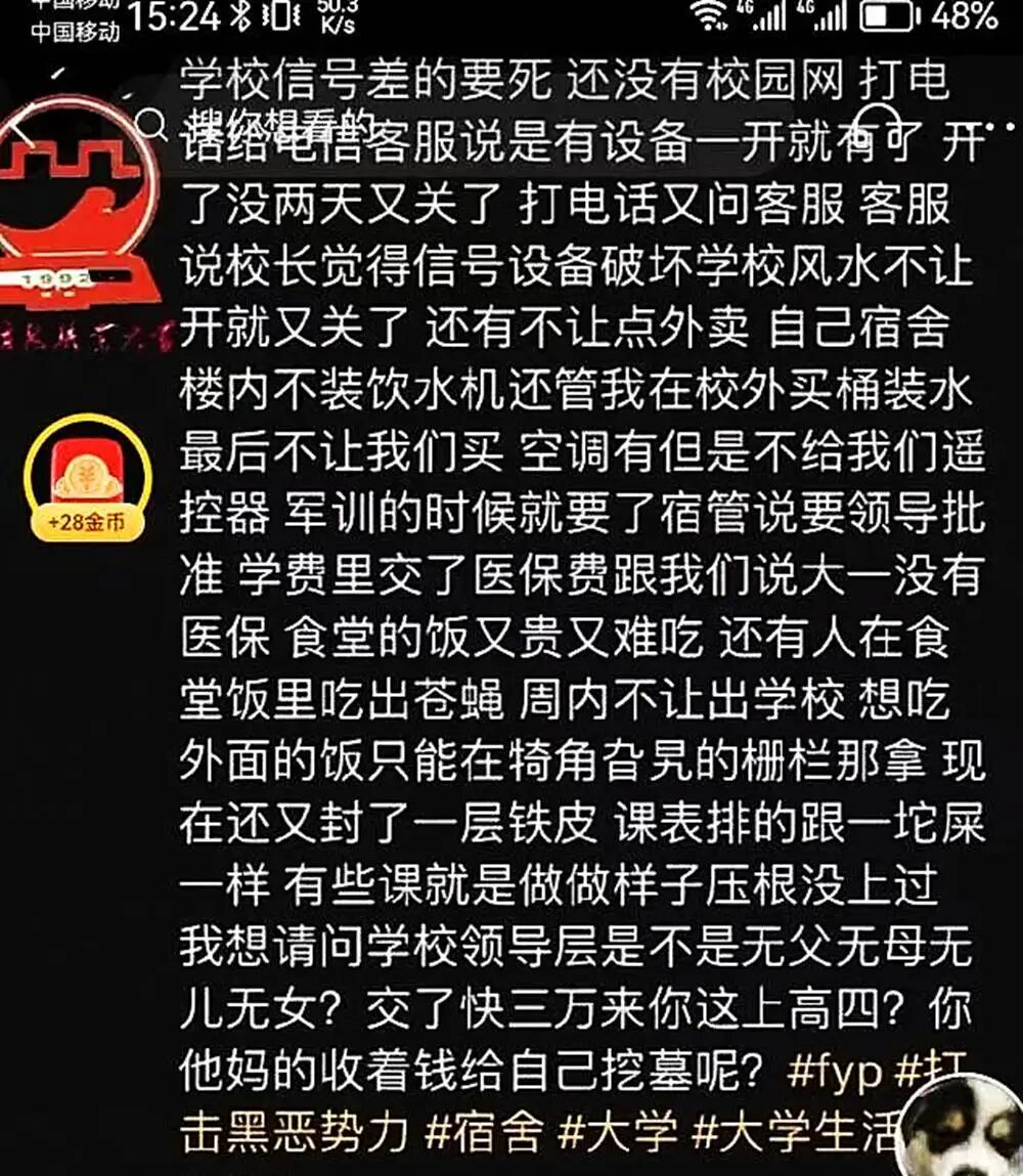 “太不要脸了,学校不把我们当人看,每年还要交3万学费!”