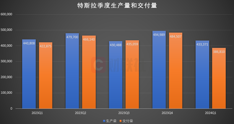 但到了今年第一季度,交付数量仅为38万余辆,低于华尔街专业分析师所预期的45.7万辆,对比去年同期甚至还下滑8.5%。