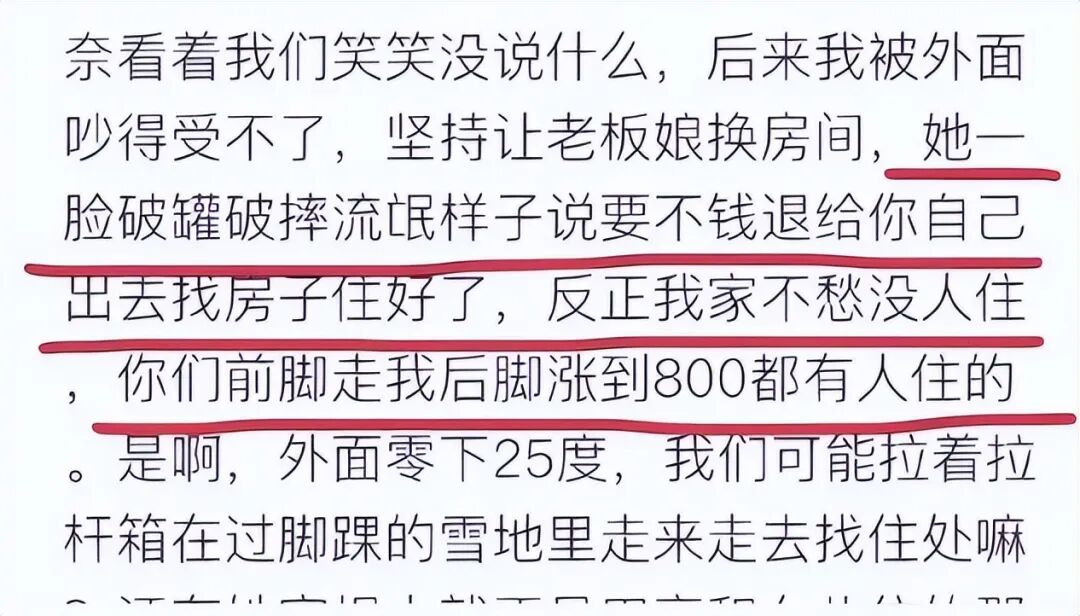 后来游客被强行赶出去,只能拖着拉杆箱在零下25度的雪夜里重新寻找住处。