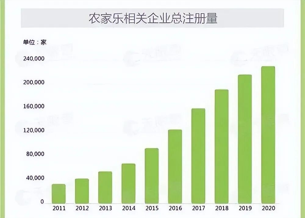 2010年至2020年,是农家乐的高光时期,全国农家乐的数量从2.6万家狂飙至14.6万家,短短10年间翻了7倍!