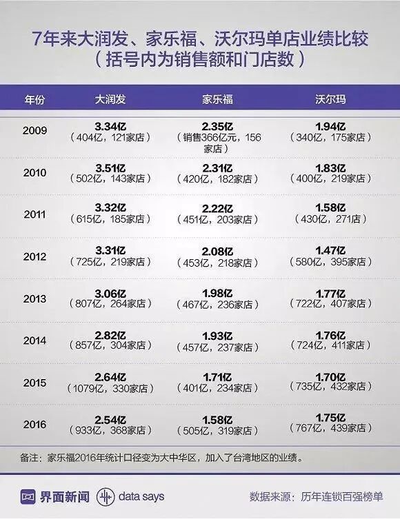 很显然,在店长集权制管理、卖场轻体量运营和“上下通吃”的盈利策略下,无论是门店数量,还是营收利润,家乐福都是行业的佼佼者。