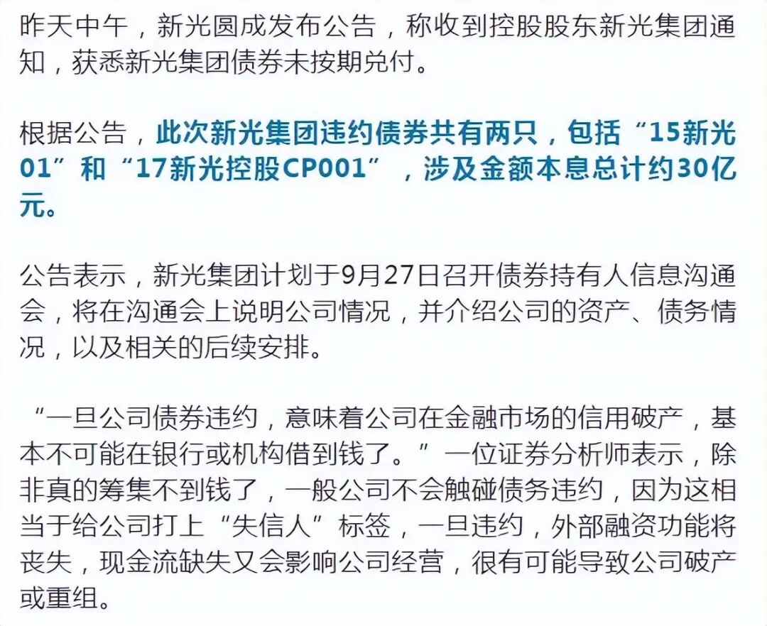 2018年,也是新光集团上市后的第二年,新光旗下两只债券被爆兑付逾期。