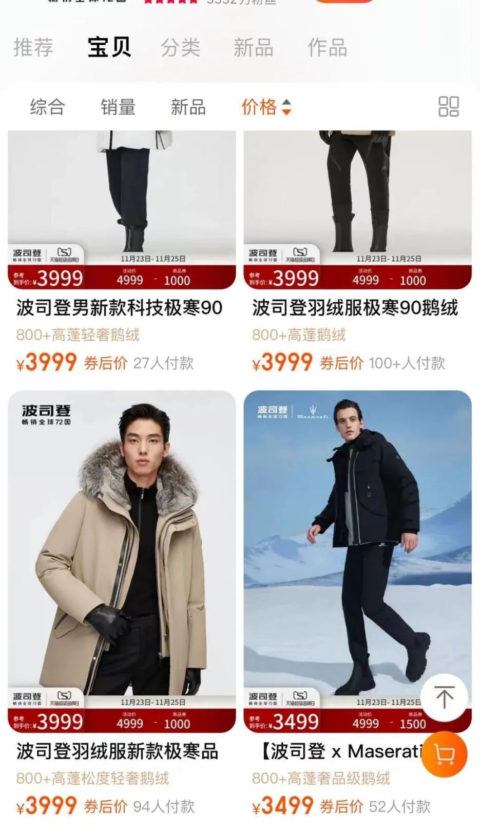 翻看销售记录可以发现,波司登旗下定价5000元以上的羽绒服,月销已经达到几千件,其中大多数买单的都是喜爱追求高品质的年轻消费者。