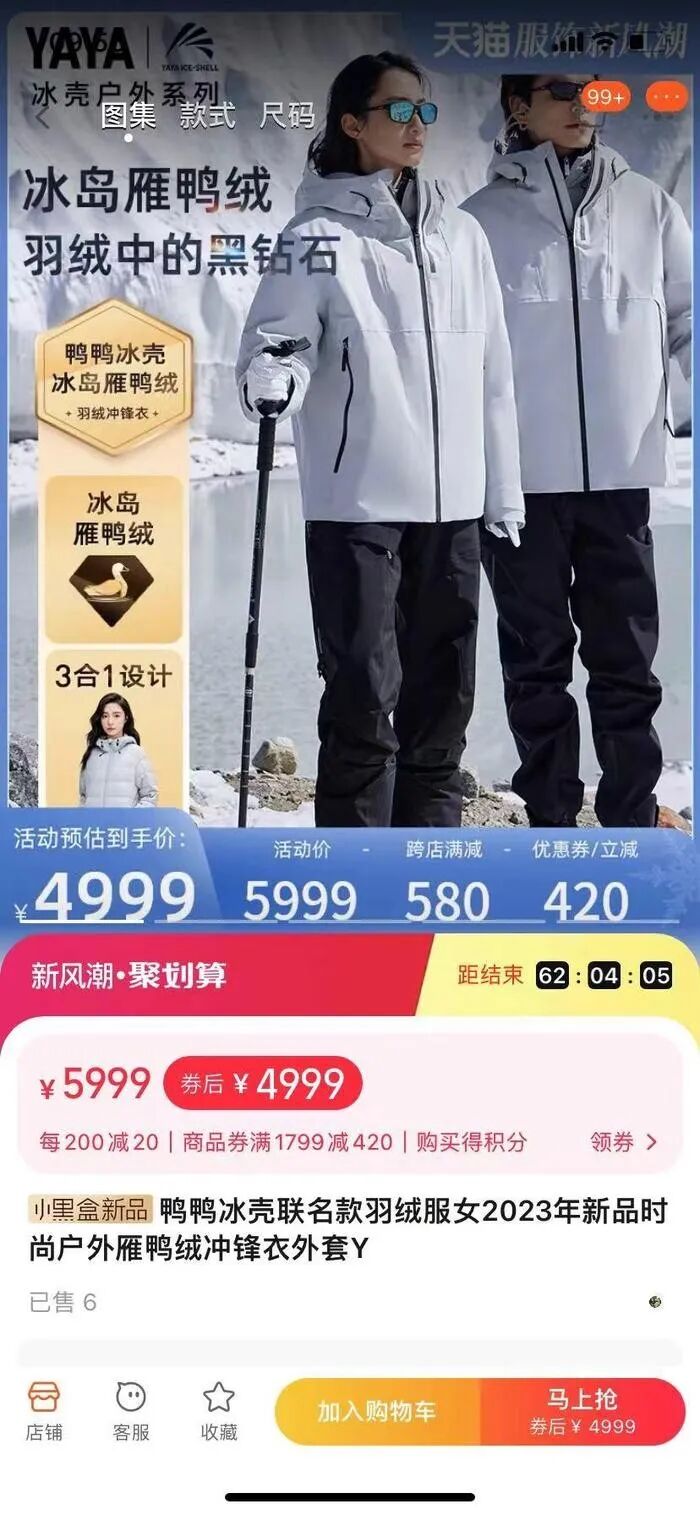 然而在今年,鸭鸭也紧跟“高奢风潮”,推出了与巴宝莉男装设计总监合作的冰壳系列,以全球珍稀的“冰岛雁鸭绒”为制作原料,定价高达4999元。