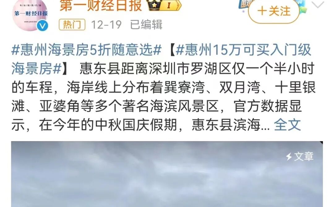 对许多中产来说,一线海景房买不起,临近深圳的惠州还是可以挑战一下。