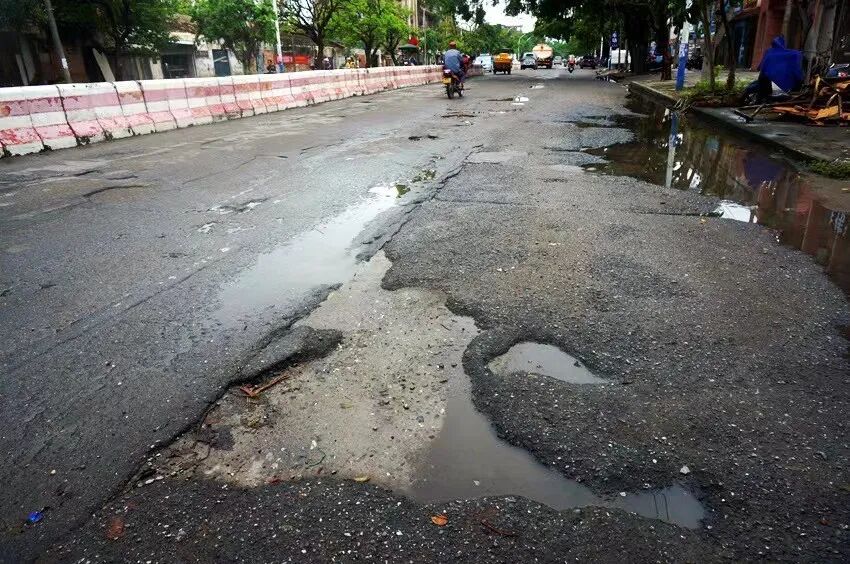但3年过去了,小区周边的路依旧坑坑洼洼,哪怕是高档海景房的小区路段上,也总会碰到需要修补的大坑。