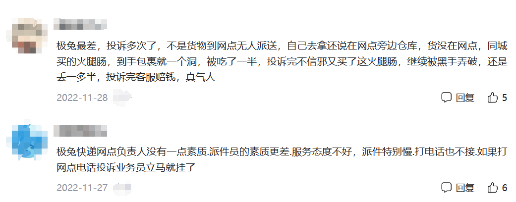 快递行业的投诉每家都有,只是极兔作为“行业新商”,被投诉的频率比较高了些。