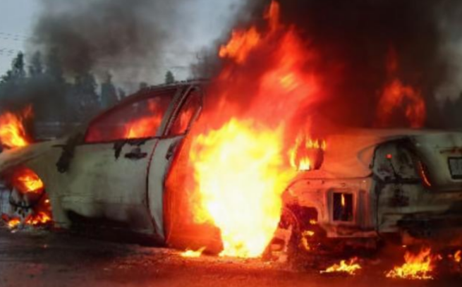 他坐回车里,将车里的几桶汽油全部倒在自己的身上,点燃打火机,瞬间火光冲天。
