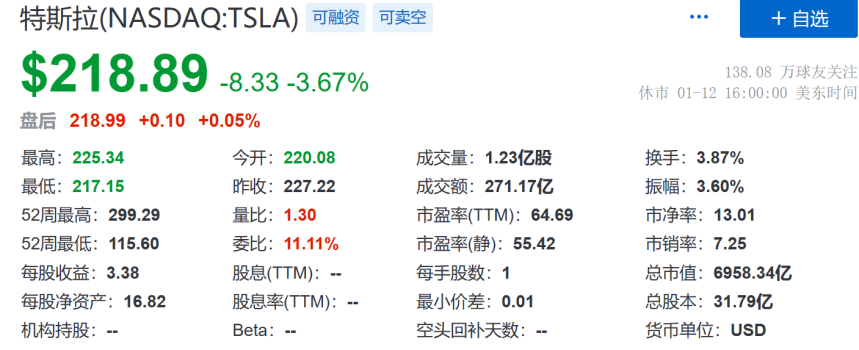 1月份才过半,特斯拉股价就迎来了暴跌,连续下跌好几天。