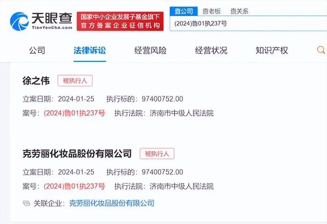 其占股超65%的化妆品子公司被强制执行9740万元,公司董事长正是徐之伟的儿子徐晓平。