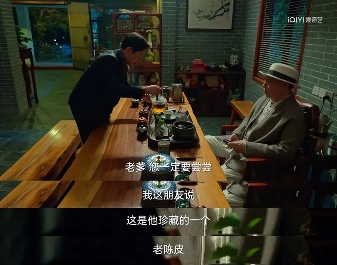 剧中,张颂文饰演的高启强简直就是新会陈皮的“脑残粉”,无时无刻不在安利他壶中的陈皮白茶,甚至连每回的推荐词都不带重样: