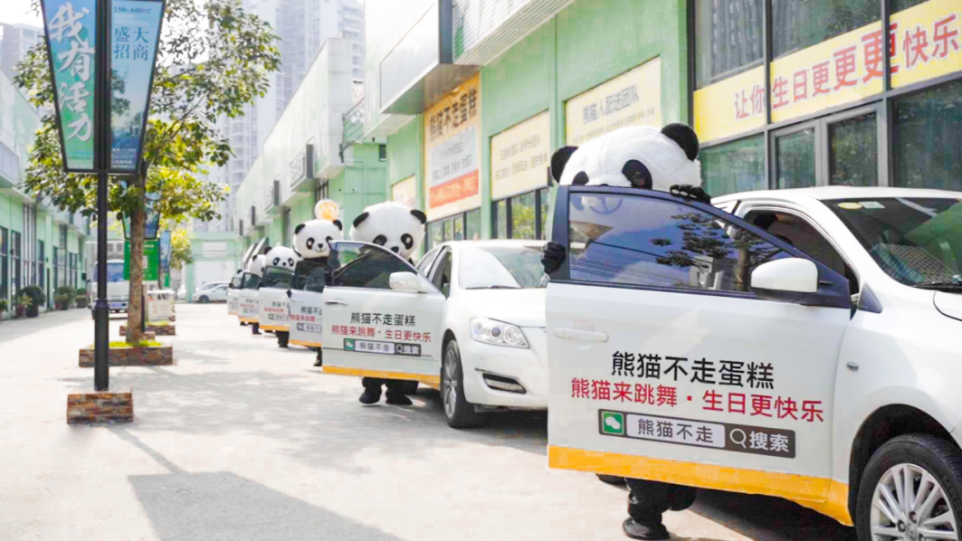 蛋糕送到家时,配送员会装扮成可爱的熊猫公仔,为寿星送上一支舞蹈、一个小魔术,为寿星营造一个仪式感满满的庆生场景,深受小朋友以及年轻职场人的喜爱。