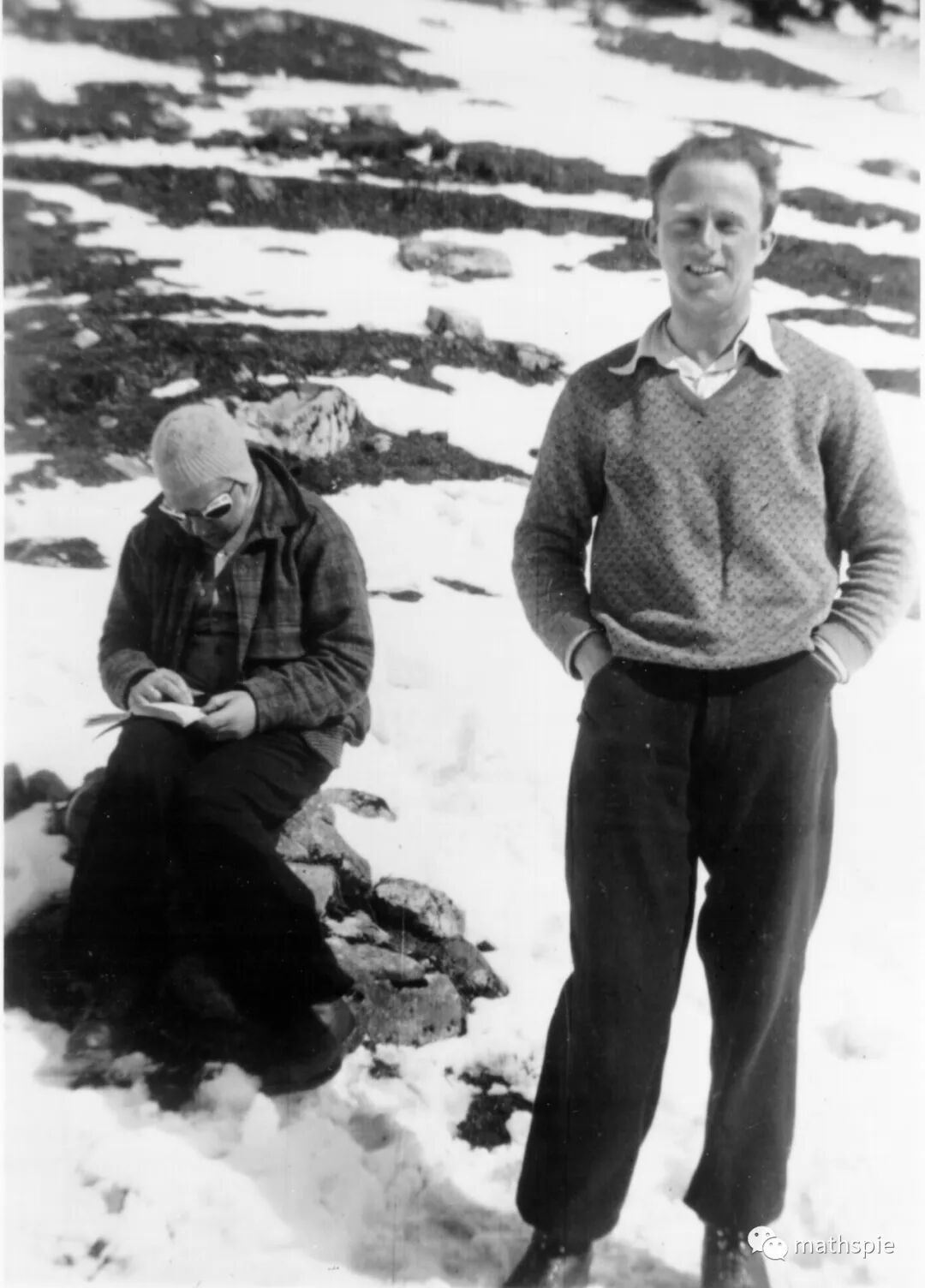 1932年玻尔和海森伯格一起滑雪度假,而通常玻尔在记笔记。