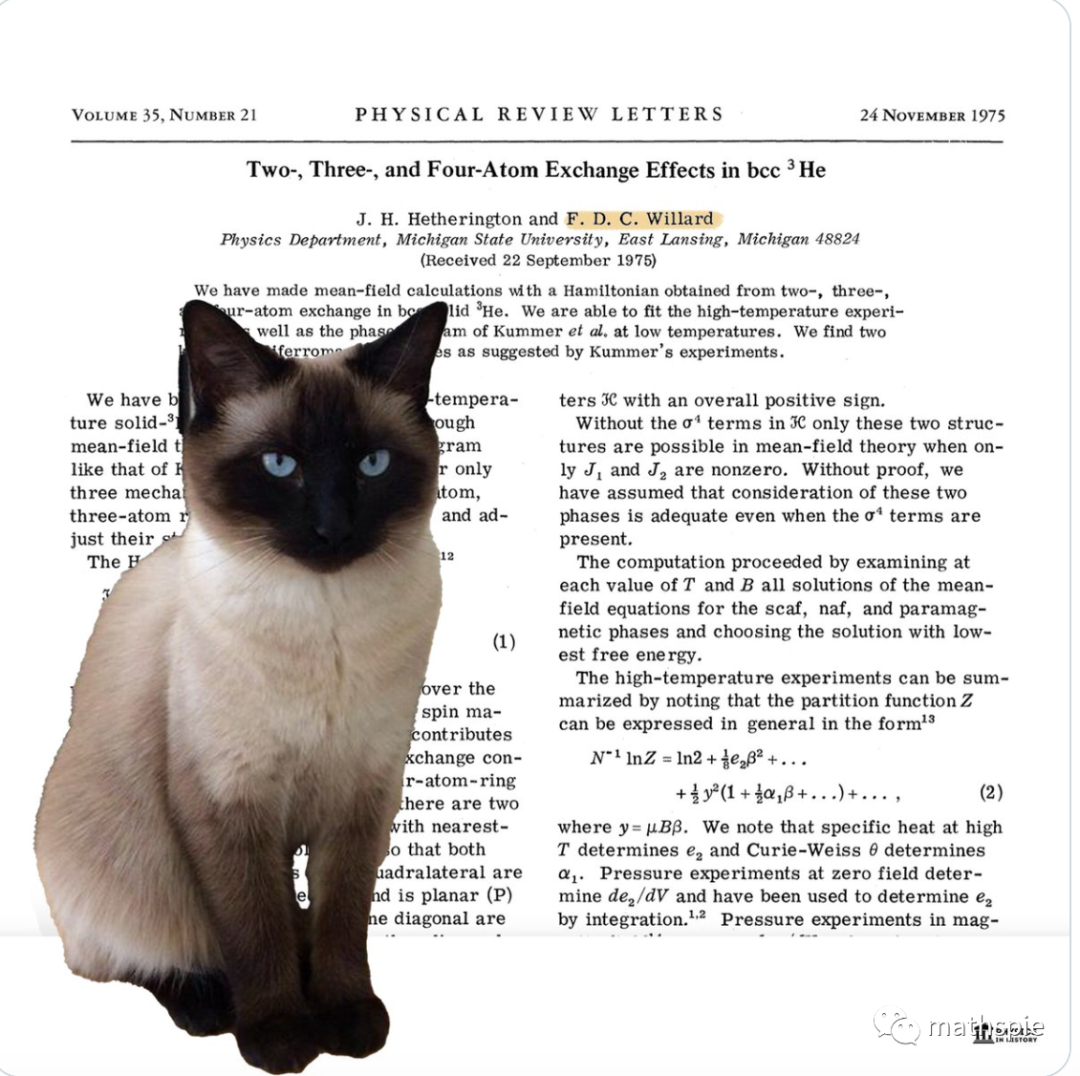 1975年,一只猫作为第二作者写了篇原子物理的论文发表在物理评论快报。