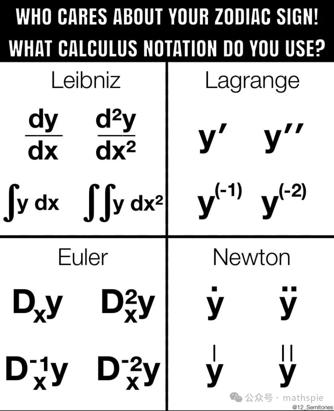 莱布尼茨,拉格朗日,欧拉,牛顿使用的微积分符号