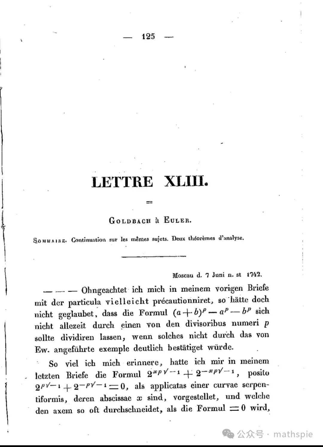 哥德巴赫写给欧拉的信