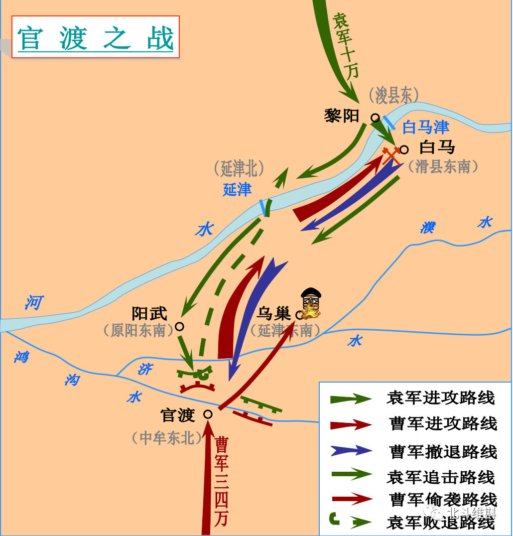 袁绍又暗中支持徐州方面的吕布对付曹操。曹操在击败张绣后,立马调兵进攻吕布。吕布失败后,刘备又和袁绍串通,试图在曹操后方掀起风浪。但是刘备挑起的内乱也很快失败了,刘备逃亡青州。青州是袁绍的地牌,曹操担心袁绍会从这里直接进攻兖州,于是就直接将军队开到了青州地牌,试图一举将青州拿下。如此,袁绍和曹操的决战就不可避免了。