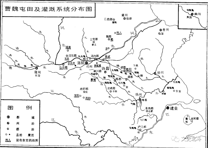 曹操统一北方后,屯田制也推广到了关中和淮南。其中淮河流域的屯田规模最大,“准北屯二万人,准南屯三万人”,“准南准北,皆相连接,自寿春到京师,农官田兵,鸡犬之声,阡陌相属”。根据《三国志》的记载,淮河一带屯田的有十余万官兵。