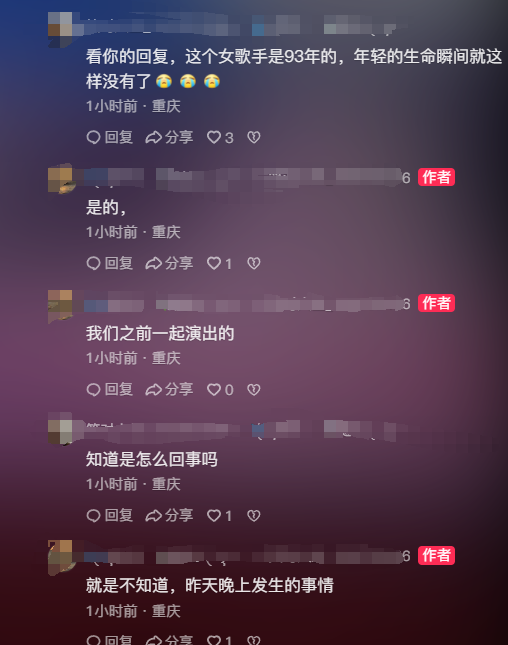 《华商报大风新闻》报道称,一位网友更新了一条灵堂悼念视频,回复网友称,发生意外的是自己的一位同行,她是一个女歌手,在演出中突然倒下,没有救过来。