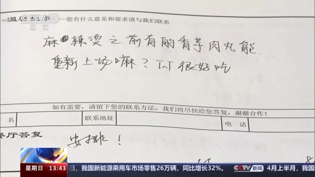 无独有偶,厦门大学翔安校区的食堂意见本也曾在社交媒体上走红。意见本上记录了学生们各种各样的建议以及食堂工作人员的回应。例如,有学生提出希望重新推出香芋肉丸,食堂的回应是“安排!”;有学生询问是否可以推出羊肉泡馍,食堂表示会“研究研究”;还有学生希望在早餐中看到武汉热干面和豆皮,食堂回应“是该进修了,我报名顶岗!武汉热干面确实馋人啊!”