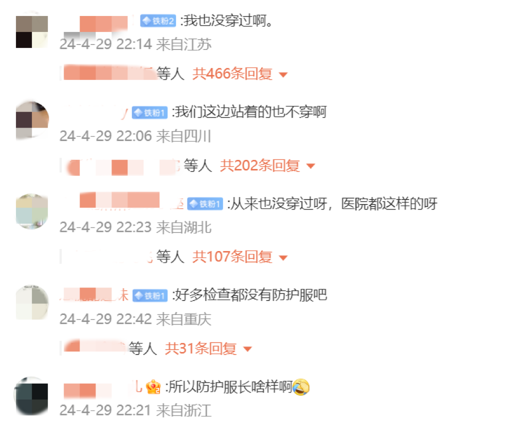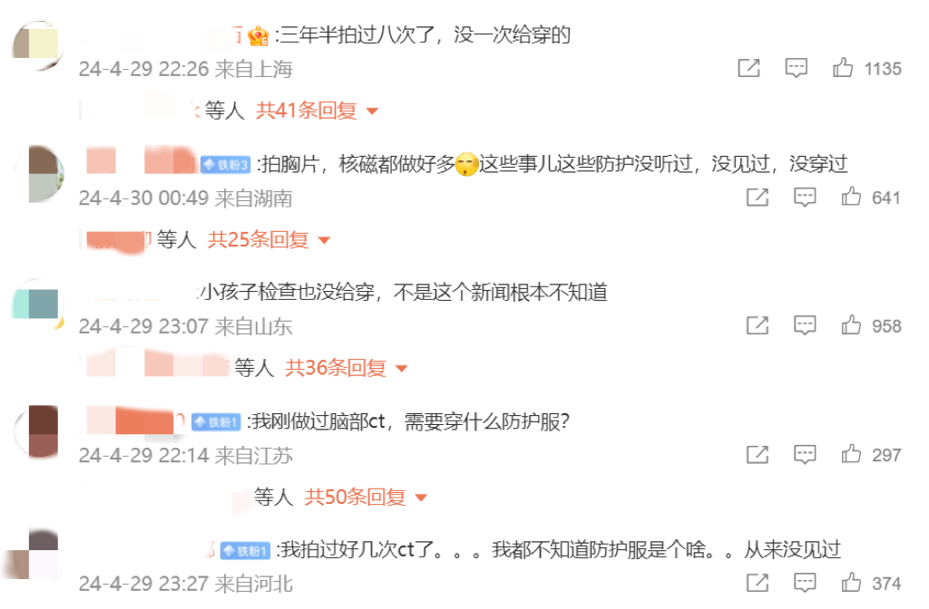 据网友评论报道,很多网友表示,自己和家人平时做X光影像检查,似乎没有使用过任何防护用品,要不是看到此事根本不知道应该穿。这一现象说明,放射诊疗防护措施做得不到位的现象或有普遍性。