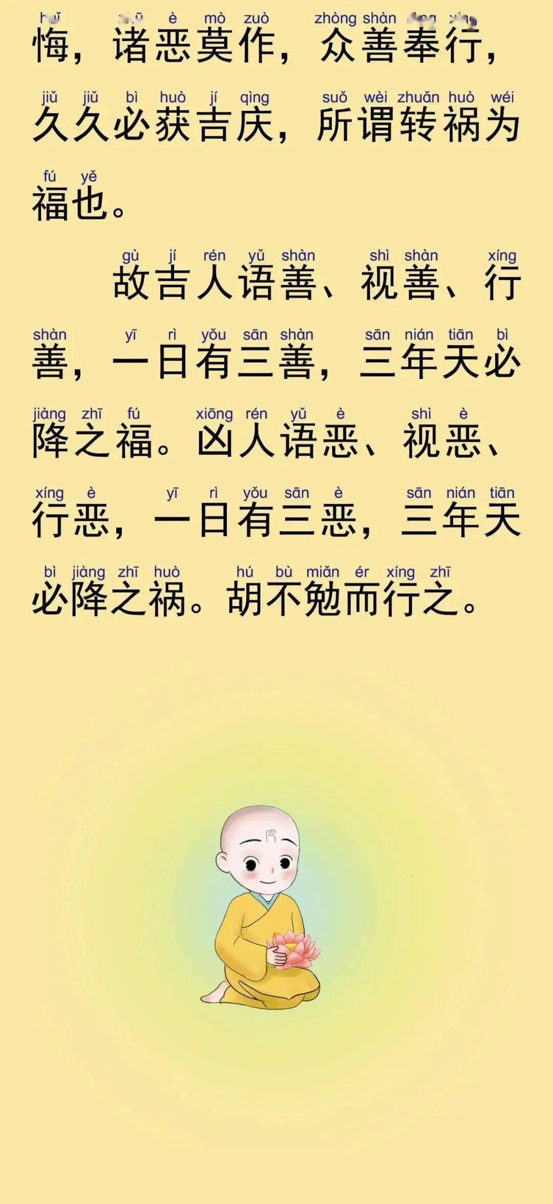 故吉人语善,视善,行善。一日有三善,三年天必降之福。凶人语恶、视恶、行恶,一日有三恶,三年天必降之祸,胡不勉而行之。