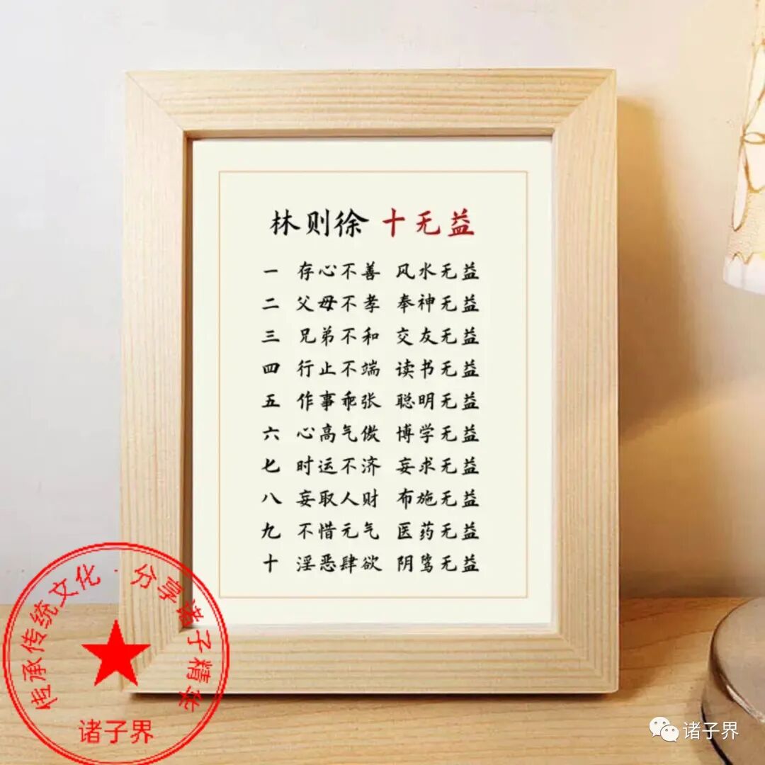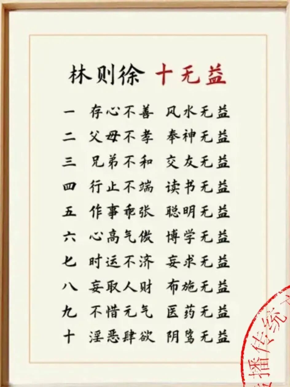 这“十无益”既是林则徐自己的修行标准,也是他教育孩子的原则。对于我们,也既是做人的根本要诀,也是教子的万金良方,当珍之惜之,细细体悟。