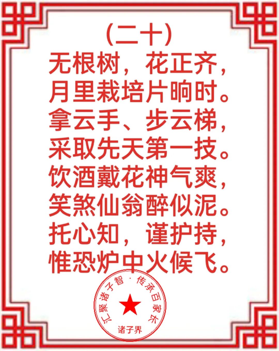 仙翁二十四词,以无根树为名,叫醒世人,使其看破浮生梦幻,早修性命耳。
