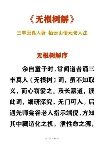 《无根树》是明代的张三丰先生在武当山天柱峰修道时留下的丹道名篇。
