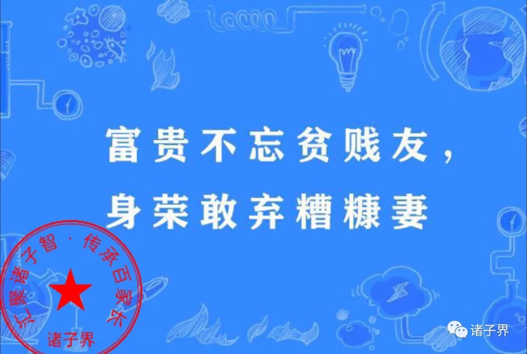 人不能忘本,纵使自己飞黄腾达了,患难当中的知交朋友不能遗忘,对于跟我们胼手胝足的妻子也不能抛弃。