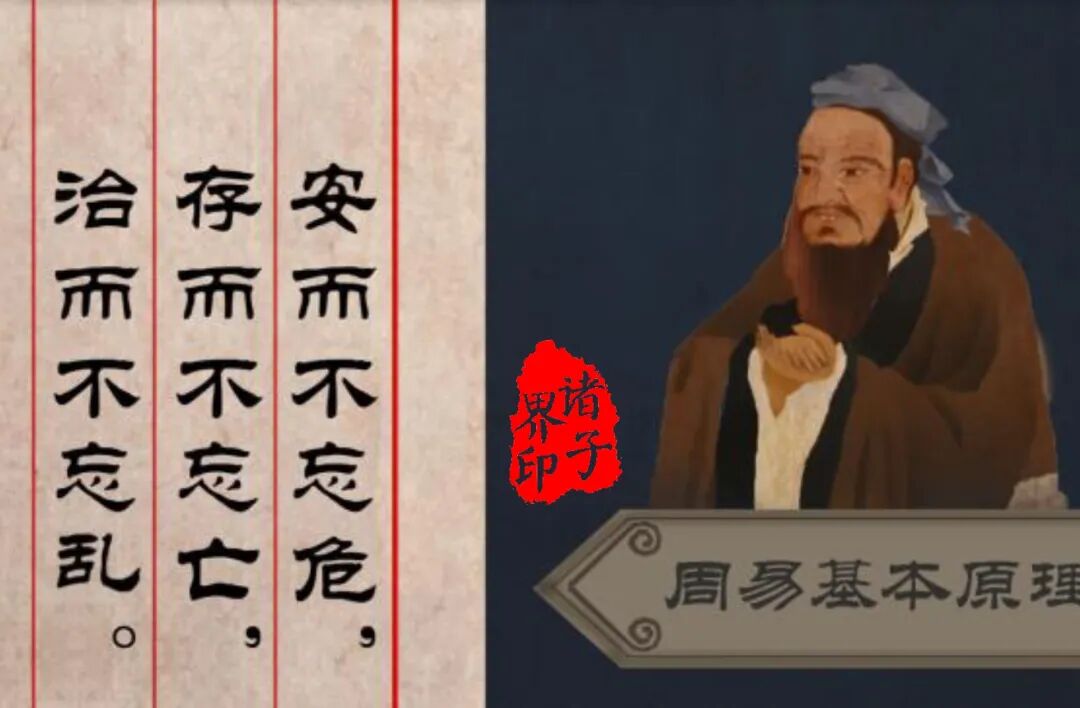 孔子说:「凡是招致危险的人,都是因为他先前安逸于他的职位上;灭亡的国家,是因为先前自以为国家可以长存;败乱的国家,是因为先前自以为已经治理稳定。因此君子安居而不忘倾危,生存而不忘灭亡,整治而不忘败乱,自身则可常安而国家可以永保。」《易经》否卦九五爻辞上说:「(心中时时自警)将要灭亡了!将要灭亡了!天下国家的治安,就能像系结于丛生的桑树一样安然无恙。」