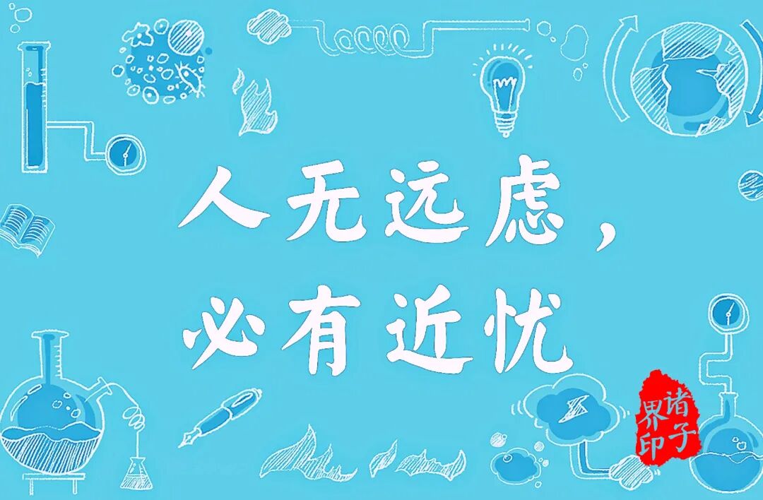 孔子说:「一个人如果没有深远的思虑,他必然随时遭遇不可预测的忧患。」意谓,就办事方面,无论大小,目标要远大,办法要周详,又要预防流弊;做人方面,也要有远大的志向、长久的规划,否则忧患就在眼前。