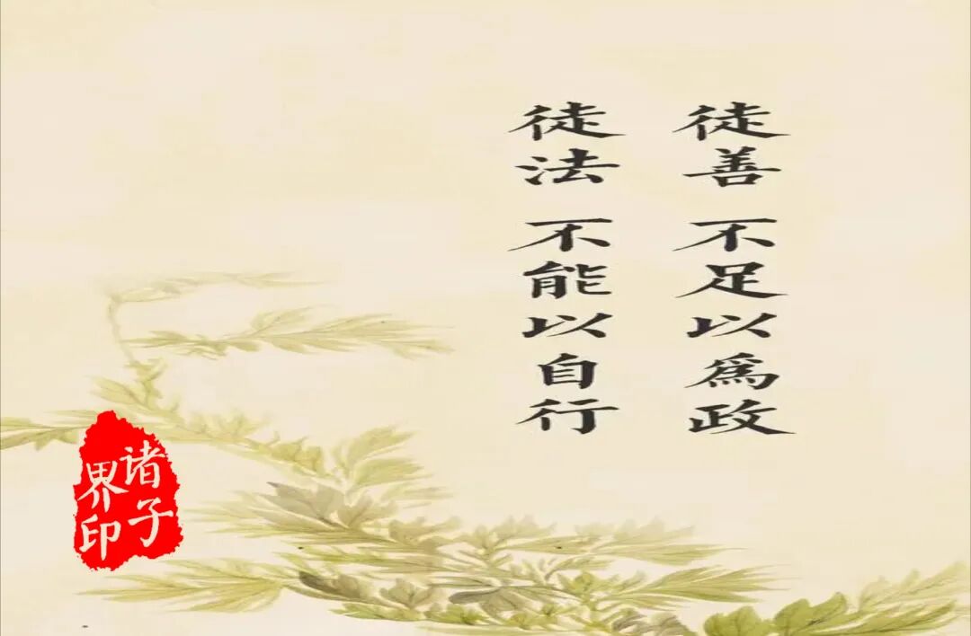 孟子说:「就算有离娄子的眼力,公输子的精巧,如果不用圆规和曲尺,也不能正确地画出方形和圆形;就是有师旷辨音的耳力,如果不按六律,便不能校正五音;就算有尧舜的道德修养,如果不实行圣王的法令制度,也不能治理好天下。……所以说,只有善心还不足以从事政治,只立善法,善法也不可能自己实行。」