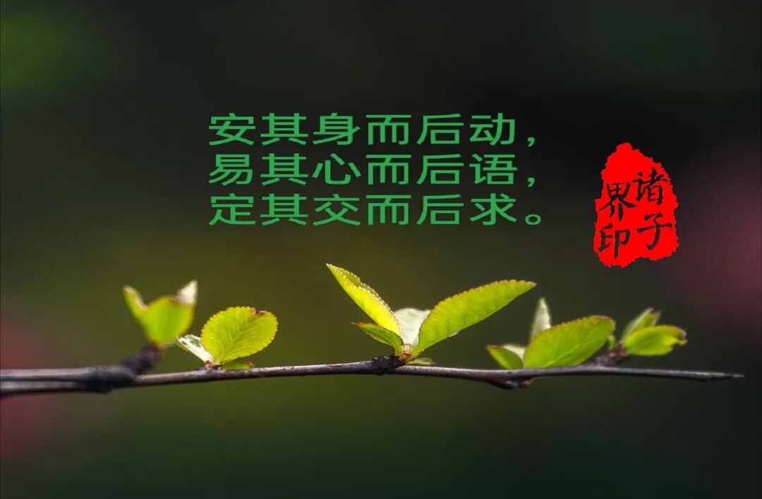 孔子说:「君子必先使自己本身安定,然后才可以有所行动;先使自己心平气和,然后才开口说话;先以诚信待人,建立信誉,然后才可以对人有所要求。君子有了三项基本修养,与人必能和睦相处,无所偏失。」