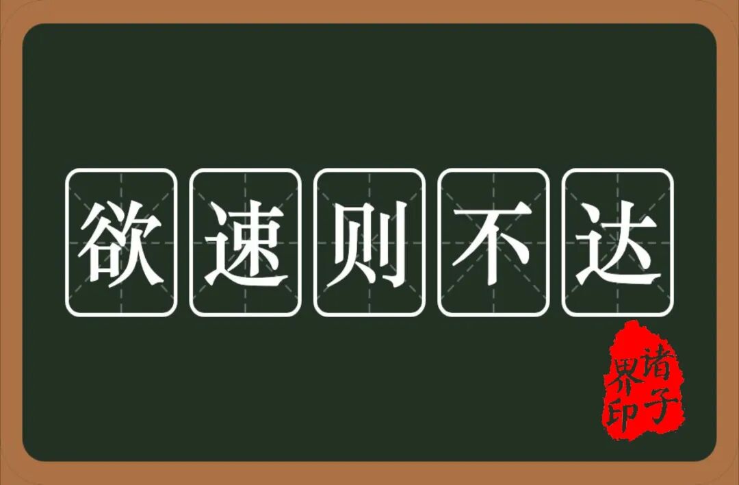 子夏当莒父县的县令,向孔子请示政事。孔子告诉他:「不要求其速成,不要着眼于小利益。因为求其速成,反而不能达成;见小利,则不能成就大事。」