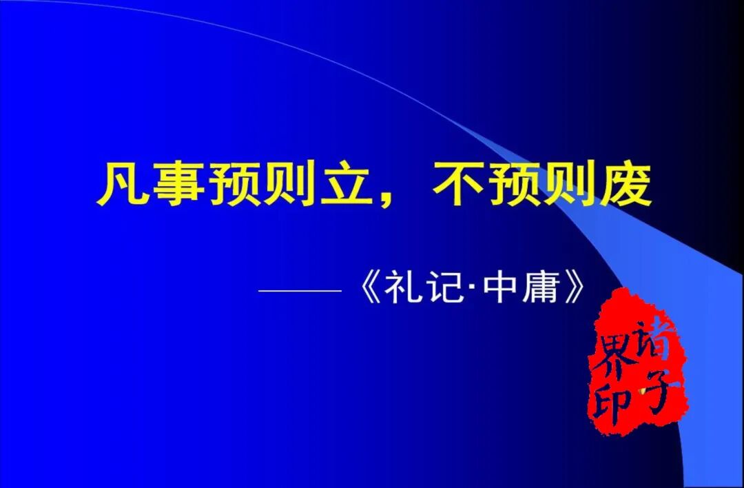 任何事情,事前有准备就可以成功,没有准备就要失败;说话先有准备,就不会词穷理屈站不住脚;做事先有准备,就不会遇到困难挫折;行事前的计划先有定夺,就不会发生错误、后悔的事;做人的道理,心中有准绳,则不至于行不通。