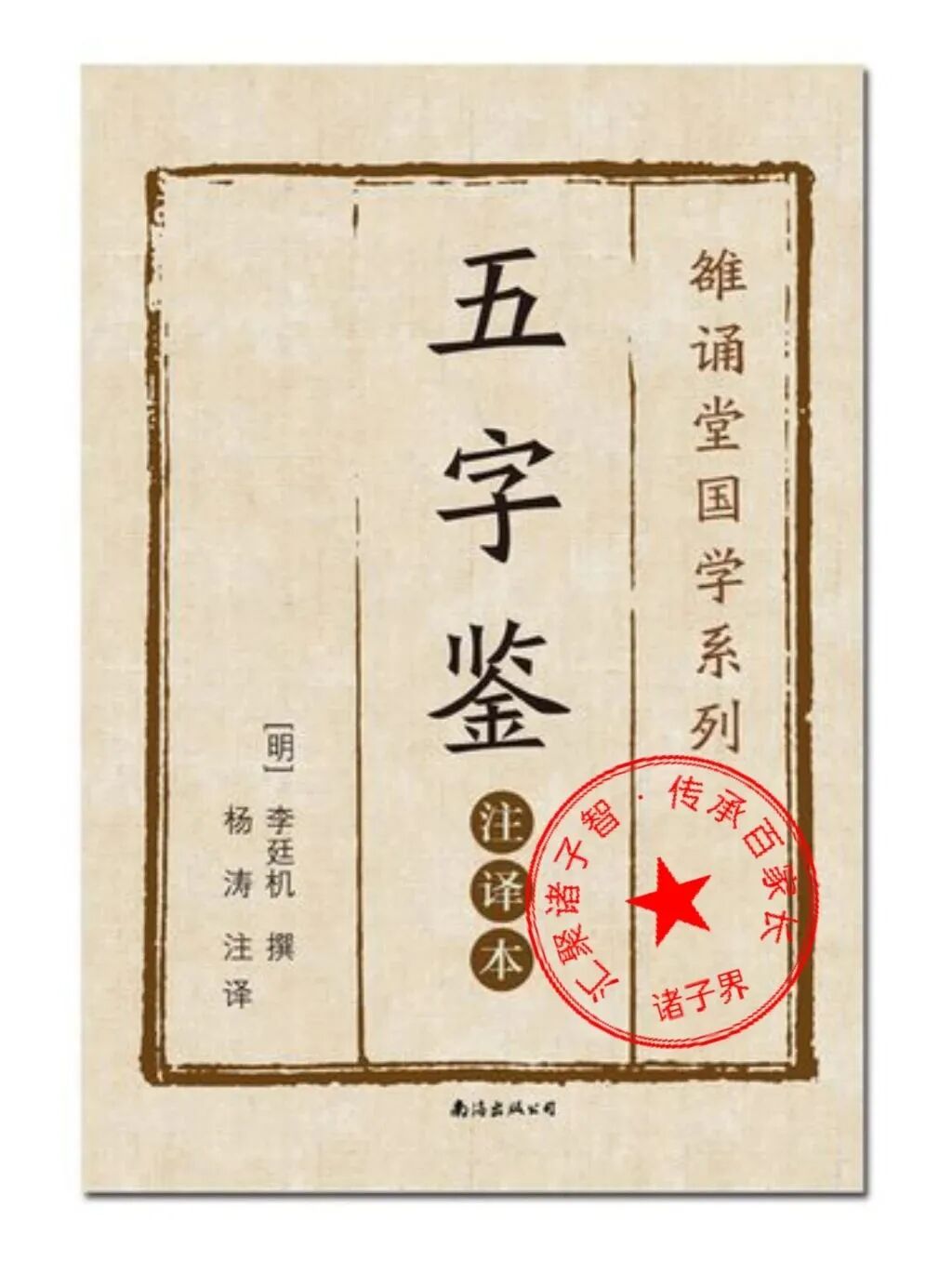 《五字鉴》,明代李廷机所撰。李廷机,字尔张,是晋江(今福建省泉州市)人。《五字鉴》是一部几百年来流传较广的蒙学读物,原名为《鉴略》,李廷机根据我国古史资料所写。