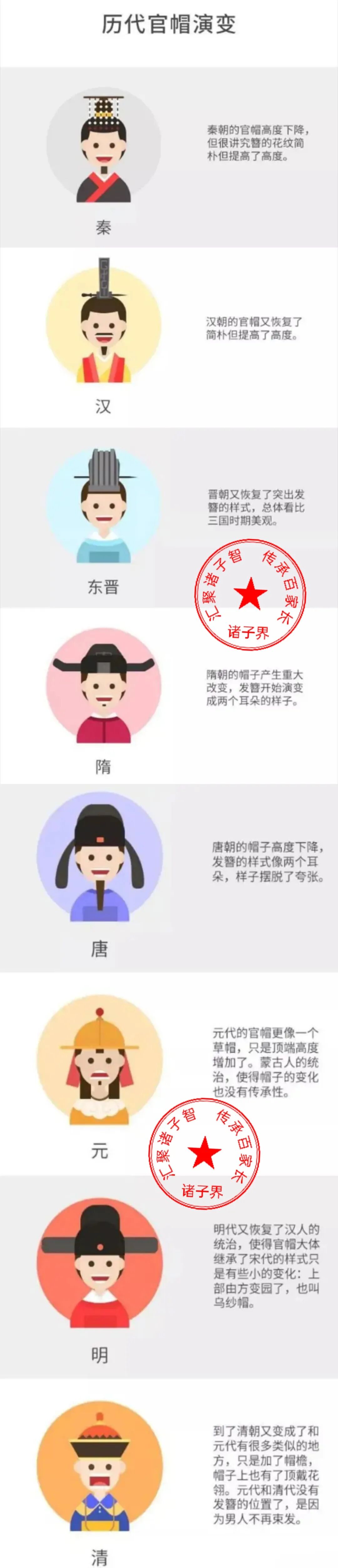 各朝代的官帽形象均有所不同,但均是一个官僚体制的外化。