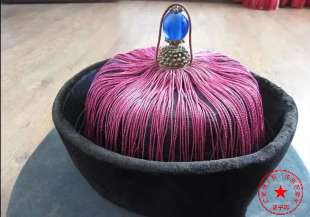 官員的帽子款式是一样的,唯一的区别就是帽顶上的宝石,以宝石来区分每一位官员的级别。不同品阶帽子上的顶珠宝石也不一样。